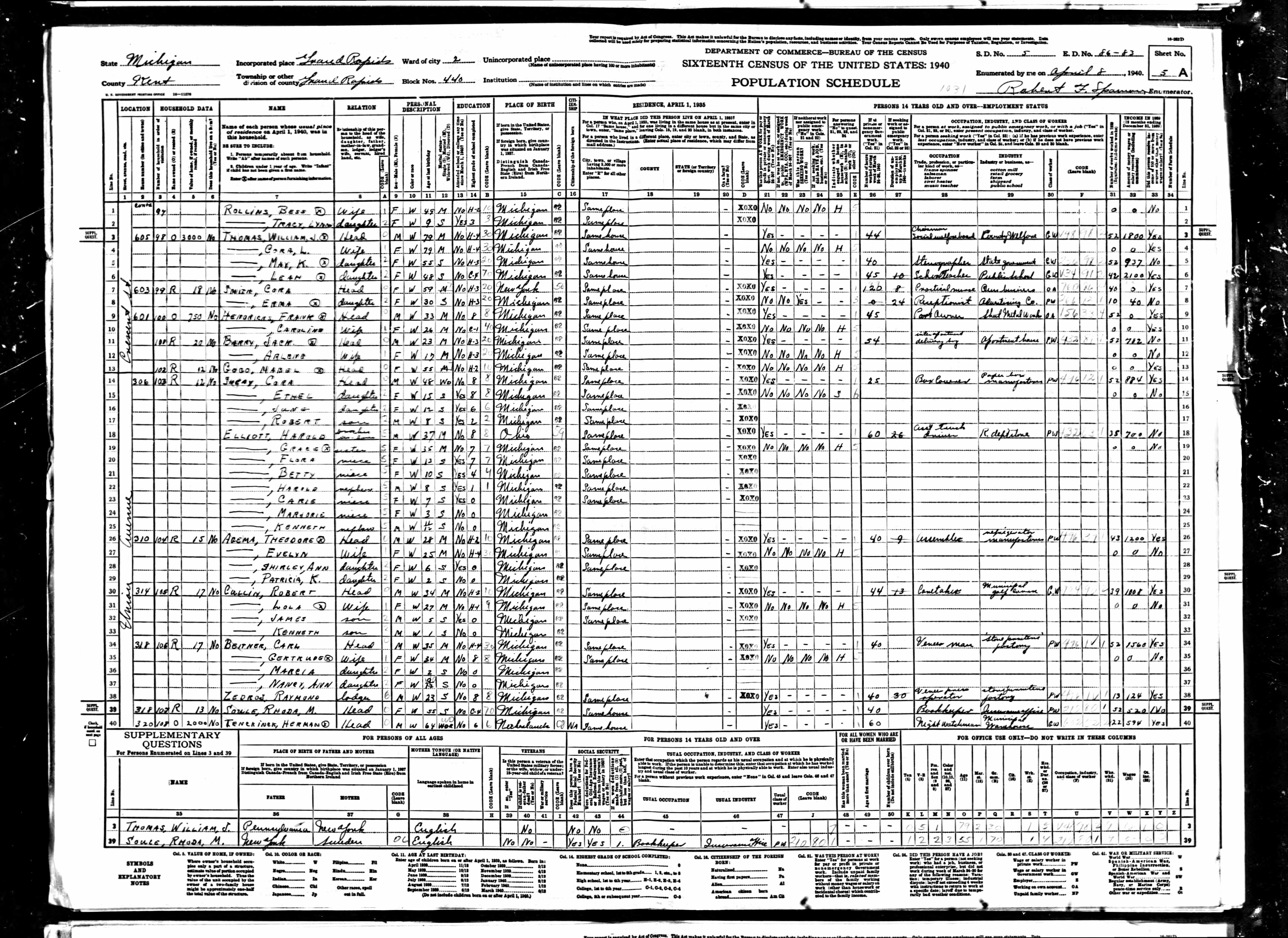 I’ve had lots of long conversations with my Gran and Great Aunt about our families but I have this growing list of questions inspired by research done for these posts and new finds. As an example, I spent hours this week flipping through census pages for Grand Rapids, MI trying to track them down in 1940. I had started with my latest directory locations for the family—which placed them living with my 2nd Great Aunt Pearl in 1937. When I couldn’t find any relatives there I called Gran and she told me they lived on Quimby. I used Morse and Weintraub’s One Step Enumeration District finder from (http://stevemorse.org) which narrowed the list down to 3 EDs. Then Gran called back and said… maybe it was Union St. Either way she wasn’t sure of the number. So, I entered Union in the finder and it narrowed it down to 30 districts. Needless to say, I found them at 306 Union Street… eventually.
