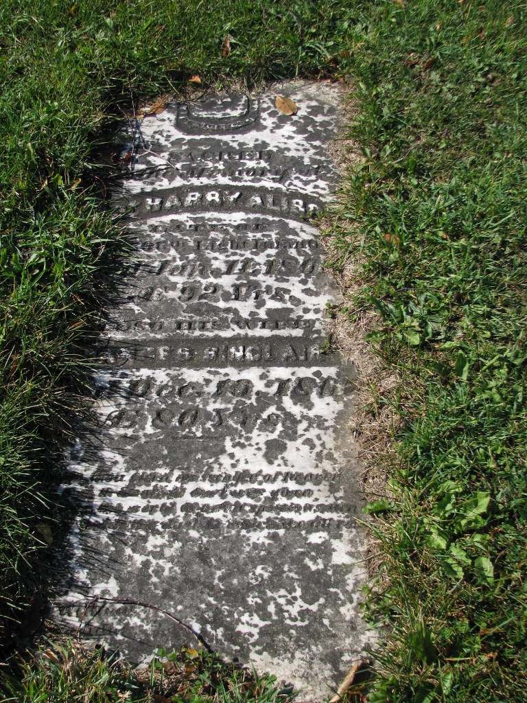 Since I omitted it from my post on the first day of our roadtrip, this is the tombstone of Captain Harry Alison, patriarch of the Alison family and the unofficially named Captain’s Alison’s Settlement which sprung up around his lots in Warwick Township of Lambton Co, Ontario in the 183os.