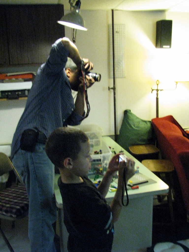 The paparazzi… Needless to say, there is a third family member (me) taking the photo. But what I could not document in this shot of my brother and his eldest child—due to tight angles and wild dancing on the part of even more family members at a raucous get together this past summer—is my father on the opposite side of the room also taking photos.